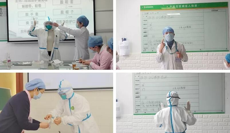 • 高曉玲和防控一線團(tuán)隊(duì)在婦三隔離區(qū)指導(dǎo)